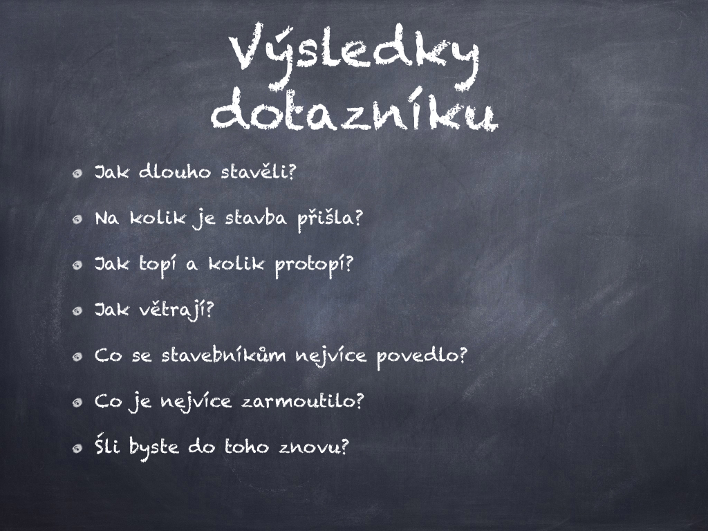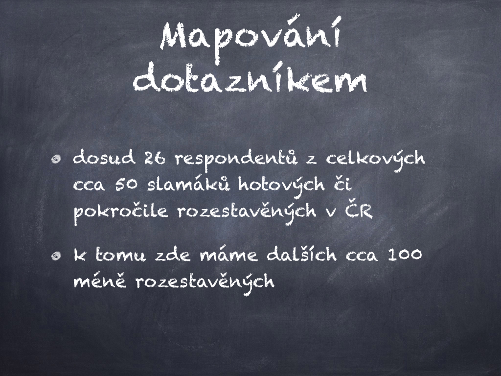 Máte-li zájem o aktualizované výsledky dotazníku a chcete dostávat další informace o novinkách v přírodním stavitelství, pozvánky na akce (vedle workshopů, přednášek a kurzů připravujeme v tomto roce také dny otevřených dveří ve slaměných domech...), přihlašte se prosím k odběru novinek zde.
